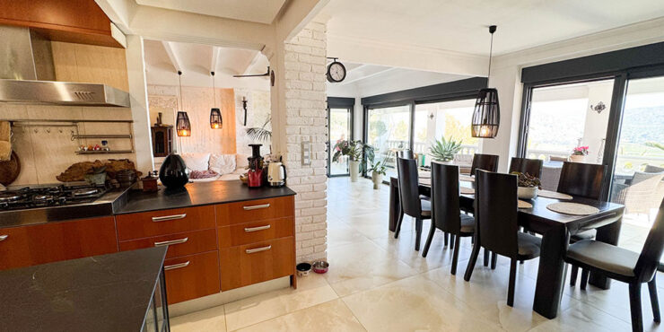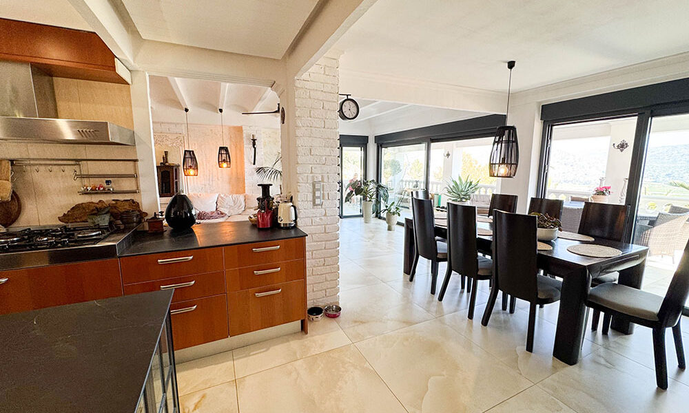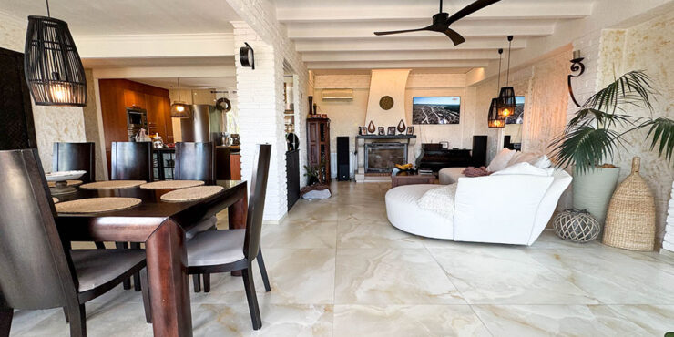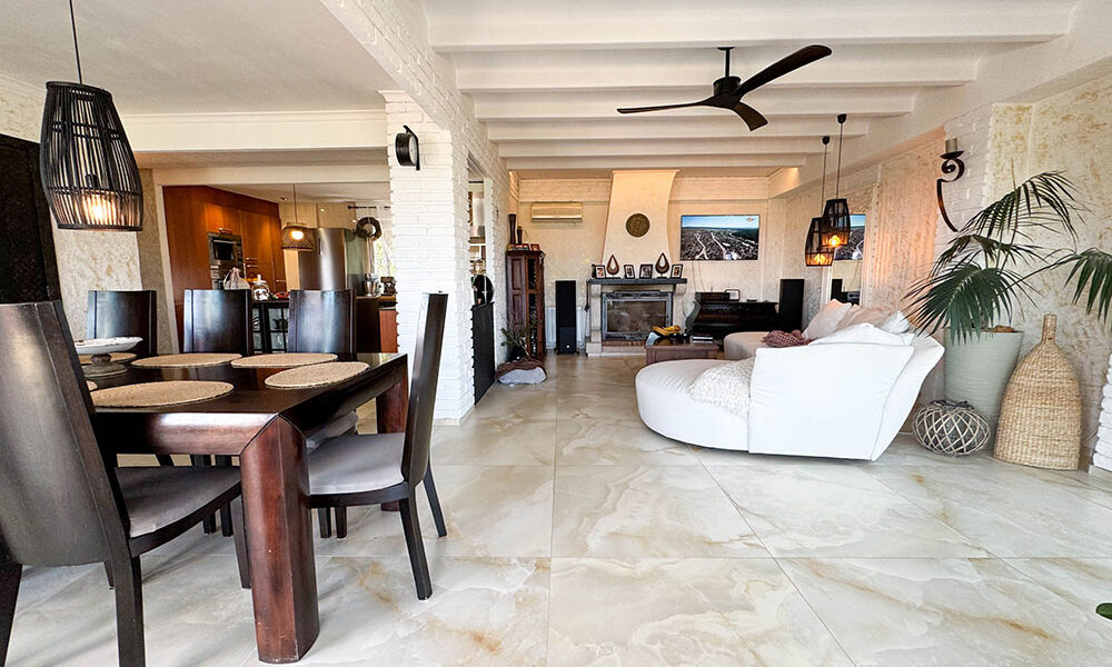The main self-contained living space is on the first floor, where you have a beautiful covered terrace at the entrance with spectacular views ideal for entertaining and outdoor dining. This large, principal apartment has three double bedrooms with bespoke fitted wardrobes and internal doors, hot/cold air conditioning and ceiling fans.