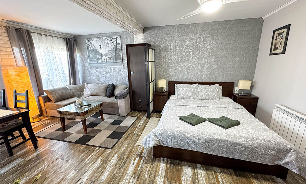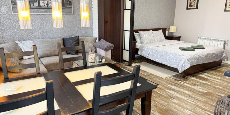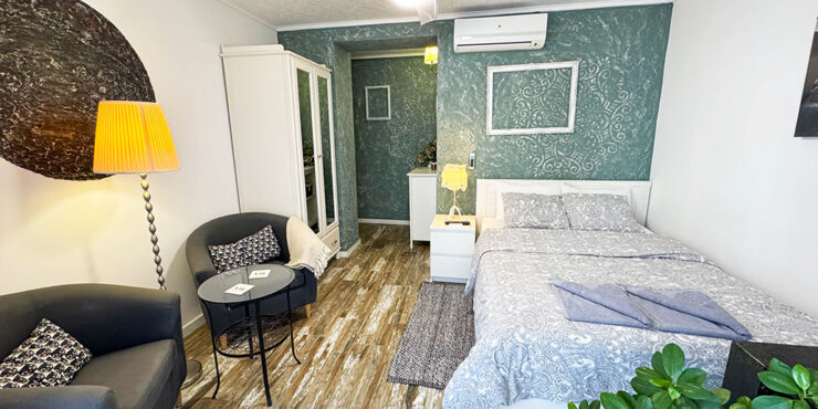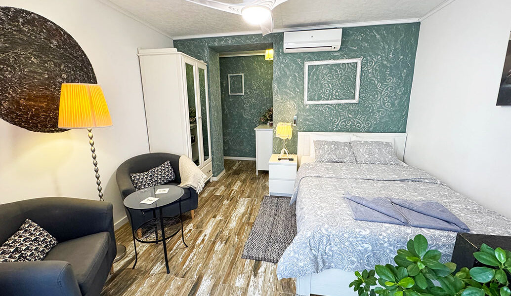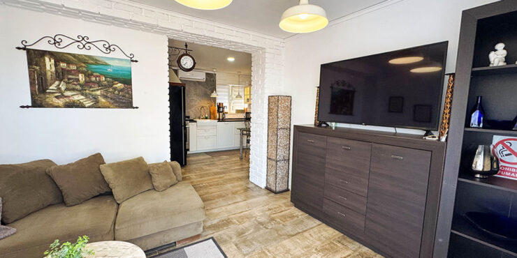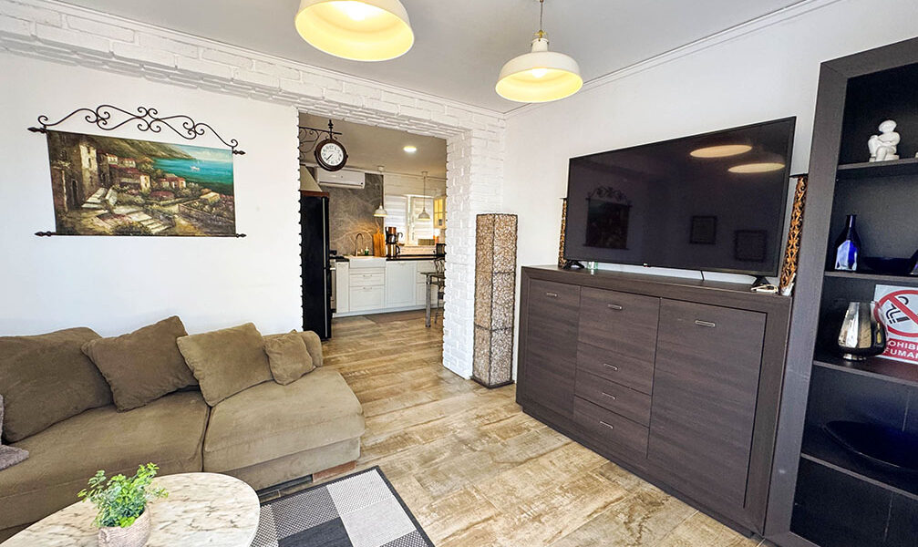 The third apartment is similar to the second, and it also has a double bedroom and a bathroom with a walk-in shower. Then you have an open plan lounge/dining room space to the modern fully fitted kitchen. Also with hot cold air conditioning and a ceiling fan.