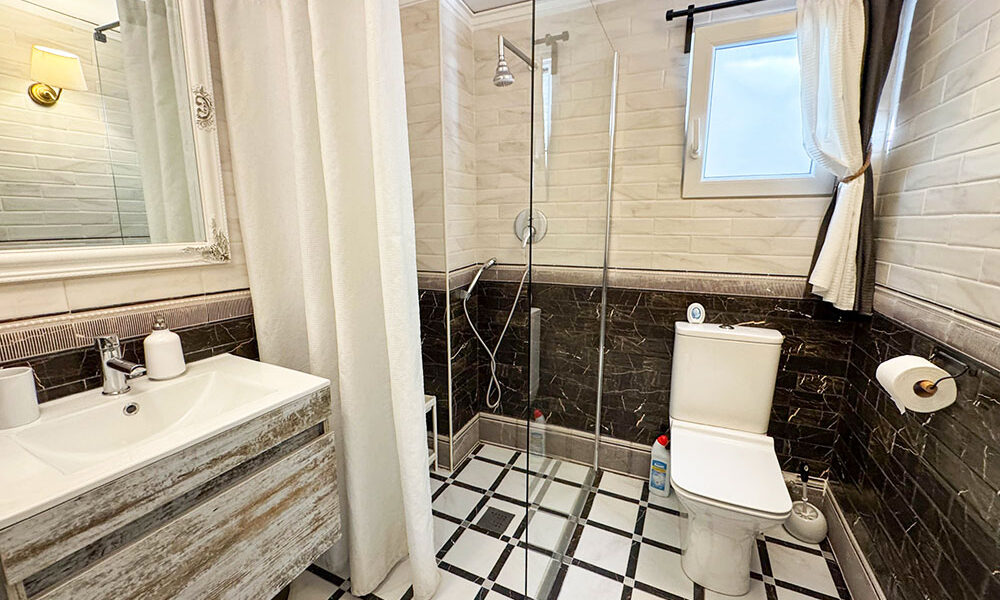 On the ground floor, there is a second self-contained apartment complete with two double bedrooms, a bathroom, and an open-plan lounge/dining room with a modern kitchen. There is a good-sized bathroom. You have patio doors taking you out to an open terrace at the front. This apartment also has hot/cold air conditioning and a ceiling fan.