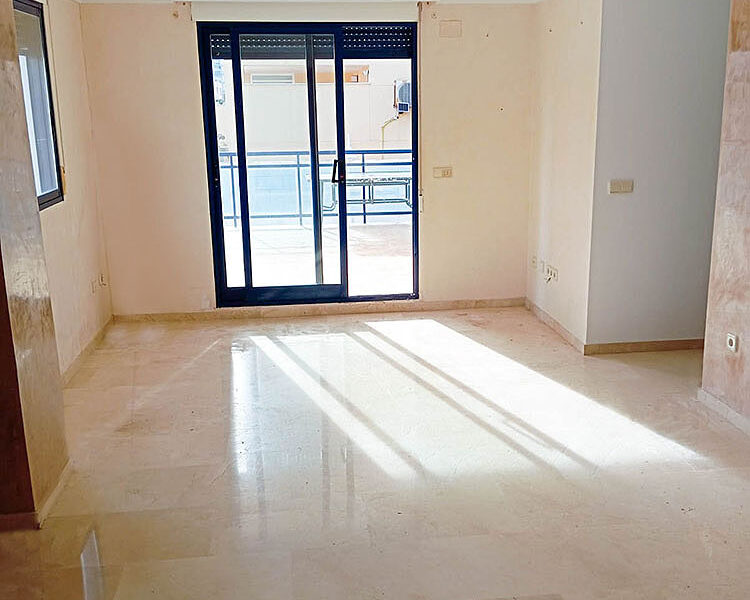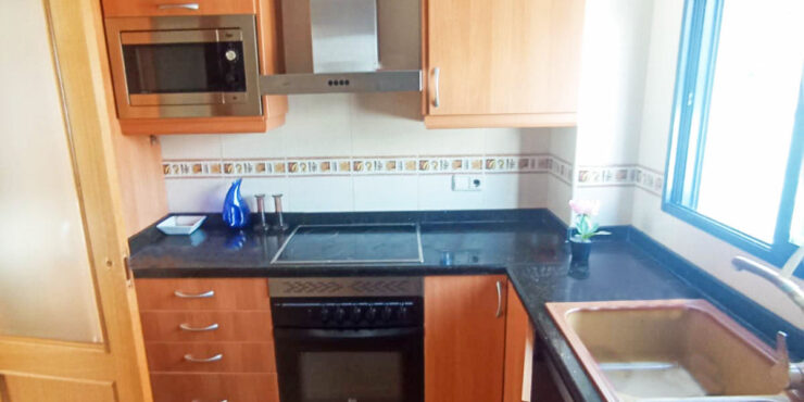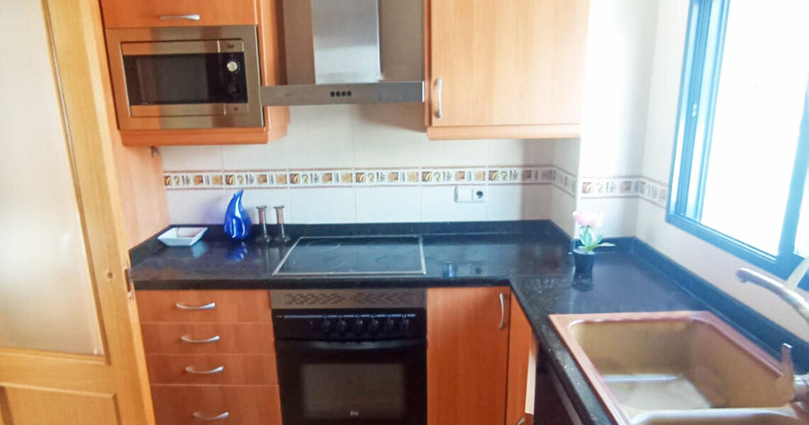The lounge/dining room has patio doors leading to a large private terrace. The lounge has also been pre-installed for air conditioning. Then you have a good-sized kitchen with views out to the terrace.