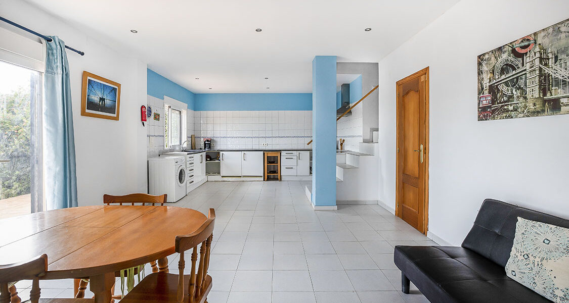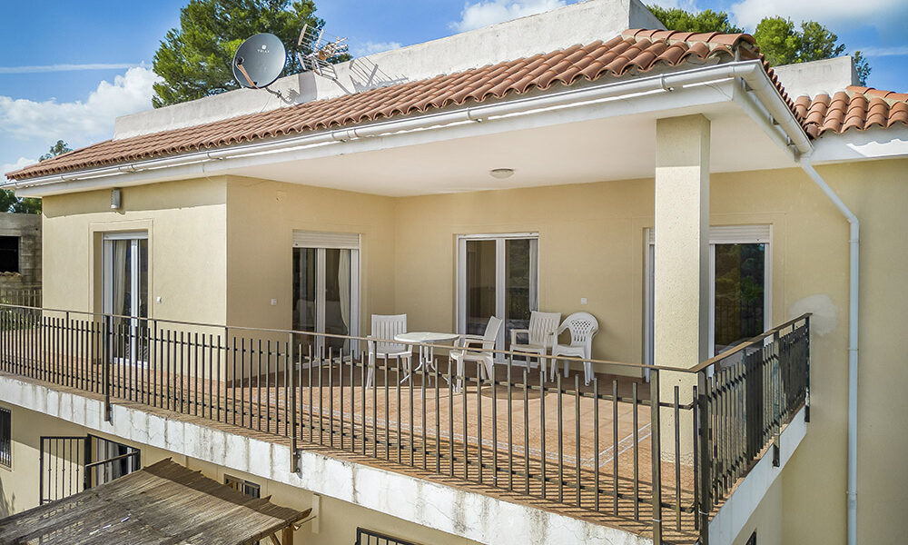 Downstairs on the ground floor, you have a fantastic self-contained apartment complete with a spacious kitchen-dining room with patio doors opening straight out to a fully tiled swimming pool terrace. Also, within this ground-floor apartment, you have another double bedroom and a bathroom. This ground-floor apartment can be accessed from the main villa via an internal staircase, meaning that you can of course, easily use it as an extension to the main floor or a space for visiting friends and family.