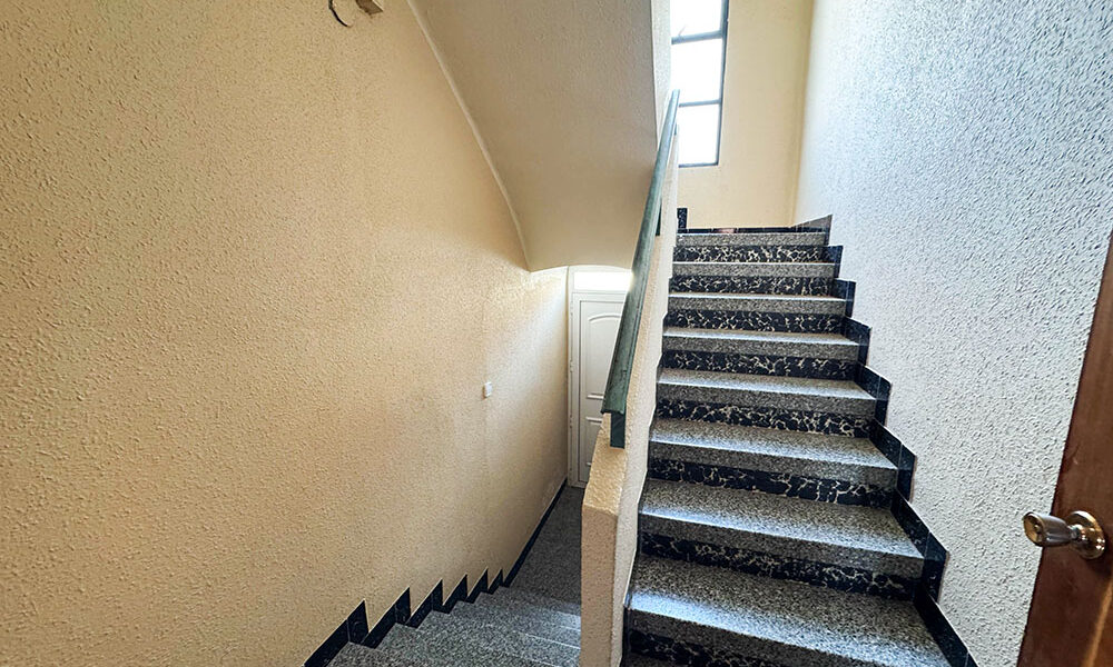 Back up on the ground floor, there is a staircase taking you up to the first floor, where you have four large rooms, one of which has access to a private balcony terrace. Also on this level, there is access to a large and spacious open-plan room of approximately 150m² floor space, complete with four individual patio doors leading out to the shared balcony that runs along the front of this property. The current owners have previously used this space as a beauty salon making the most of the four over sized bedrooms on this floor.