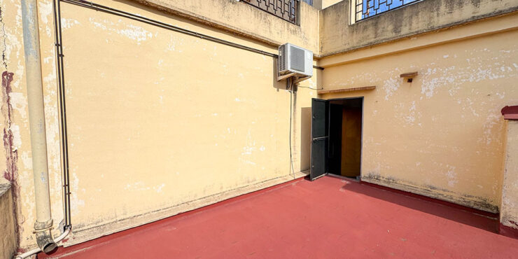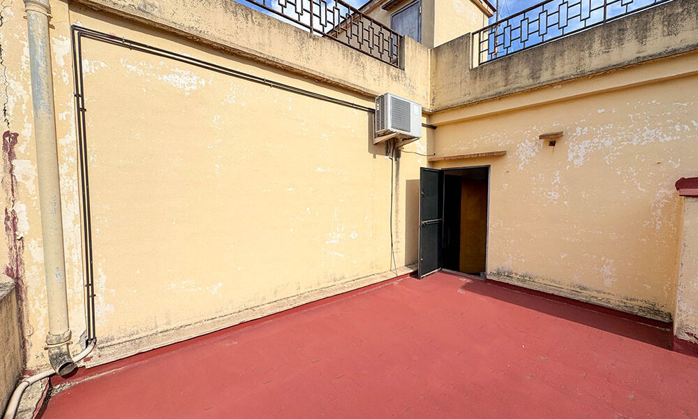 Moving up the staircase again, you have your main roof terrace covering the expanse of this grand building, and where you can enjoy 360-degree panoramic views. Then there is a smaller separate terrace. Downstairs and outside there is a  private courtyard of approximately 150 m², where you have a spacious patio and a carport for many cars with an entrance door from the street. There is also an additional area with its own garage door and a parking space within the grounds that is adjacent to this. The patio space could be an area where you could easily build a swimming pool and still maintain private off-street parking if required.