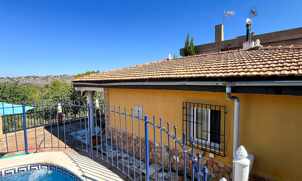 Stepping outside, directly in front of the gated entrance, there’s a garage ideal for storage or parking. Behind it, you’ll find a traditional paellero (outdoor kitchen) and a convenient guest bathroom, perfectly positioned for visitors enjoying the magnificent elevated swimming pool. The pool is fully tiled and features a top-quality filtration system, keeping the water crystal clear all year round. Thanks to its elevated position, you’ll never lose sight of those incredible mountain and countryside views.
