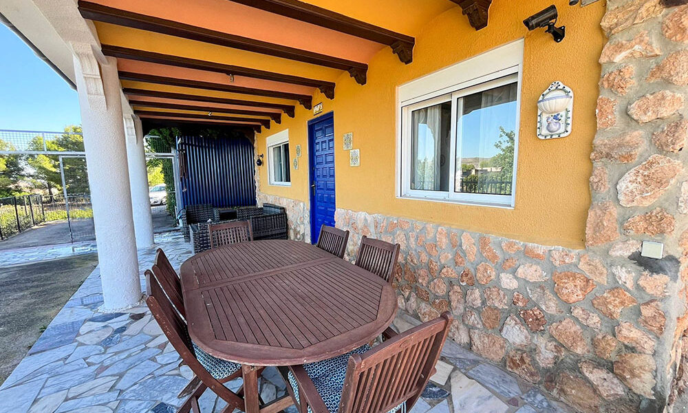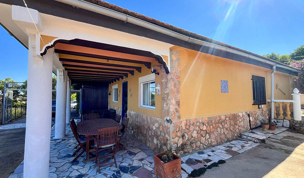 This property is set on rustic land and offers a truly special combination of charm, comfort, and unbeatable views. The main house features three spacious double bedrooms, a bright and airy open-plan living and dining room, a fully equipped and colourful kitchen in excellent condition, and a modern family bathroom. The property is registered in Torrent, however it is situated on the furthest limit and it is actually closer to Montserrat, located on the boarder between Montserrat and Torrent.