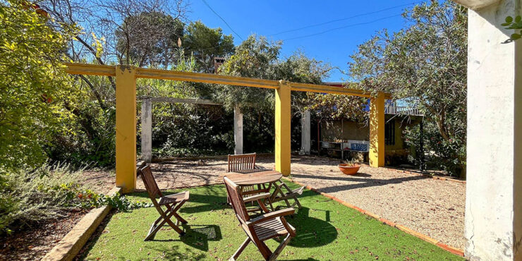 What truly makes this property unique is its “secret garden”: just 200 metres away, you’ll find a separate fully fenced private plot of 1.141 m² full of mature fruit trees, including almonds, olives, oranges, lemons, pomegranates, bananas and grapes. There are also two small storage rooms for tools and plenty of space to spend peaceful hours surrounded by nature, enjoying your very own Mediterranean orchard.