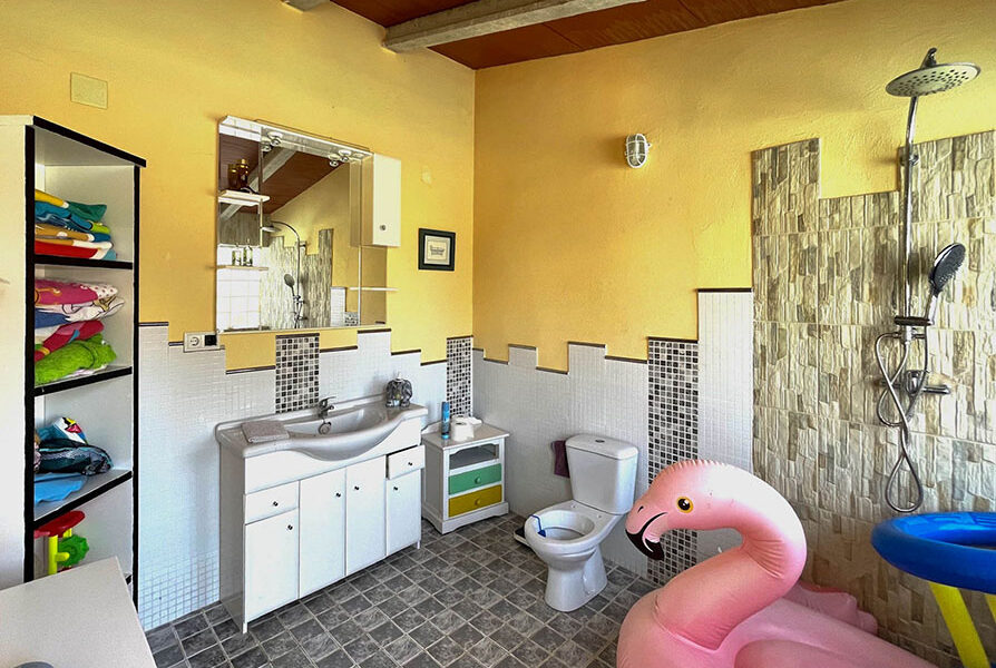 From the main living area, a corridor distributes the night zone, offering three double bedrooms. The primary suite enjoys its own en-suite bathroom, and a second full bathroom serves the remaining two bedrooms, creating a balanced layout for families, guests or a home-office setup. Comfort is assured year-round thanks to a hot/cold A/C unit in the living–dining room and pre-installation for ducted hot/cold air-conditioning throughout the house, giving you a straightforward path to upgrade climate control if you wish.