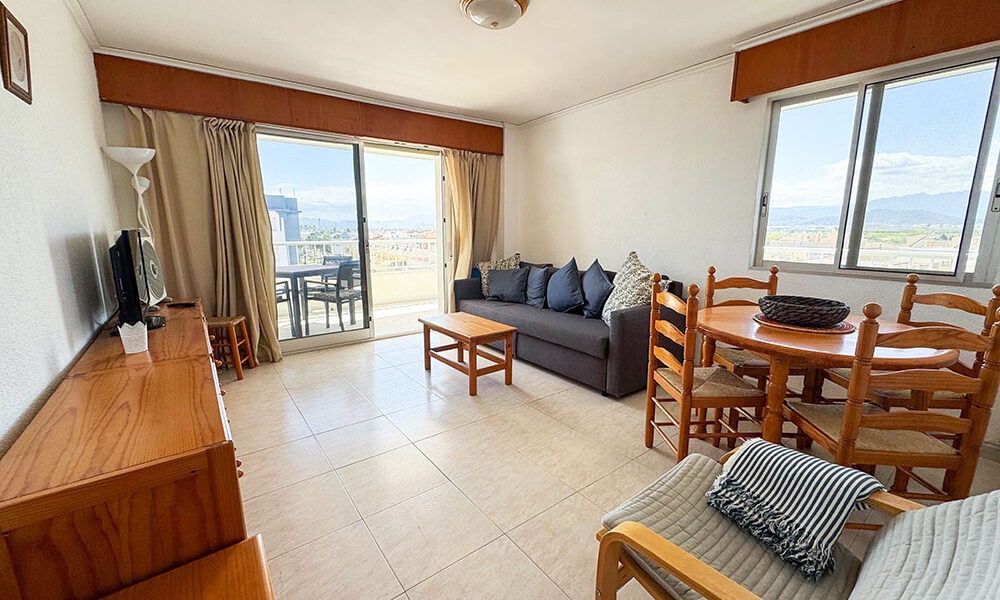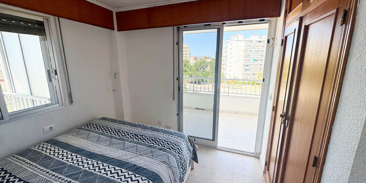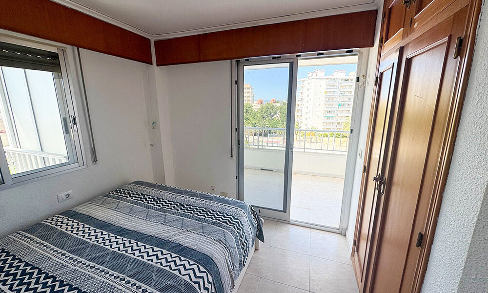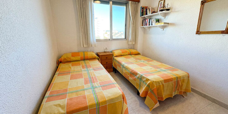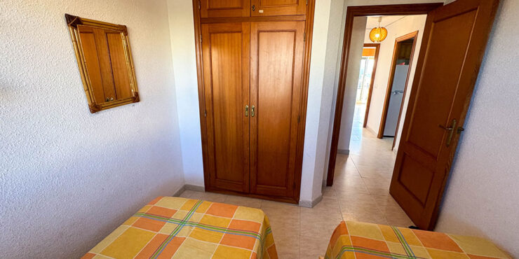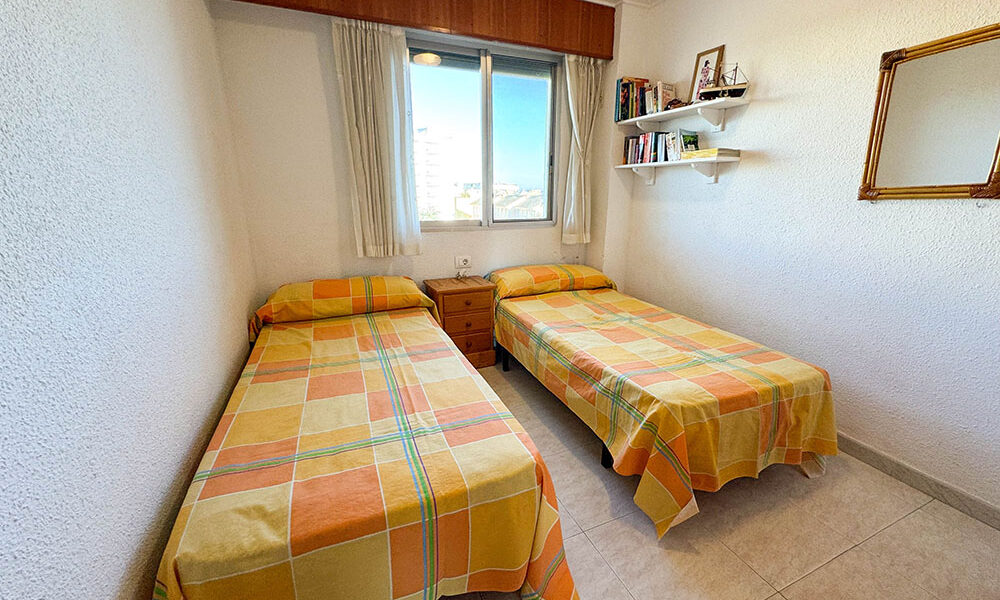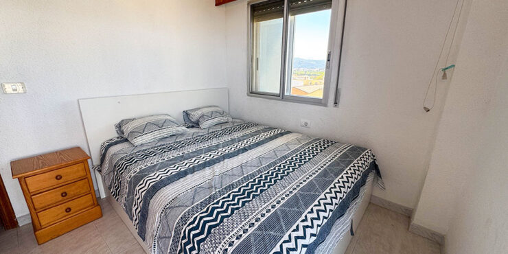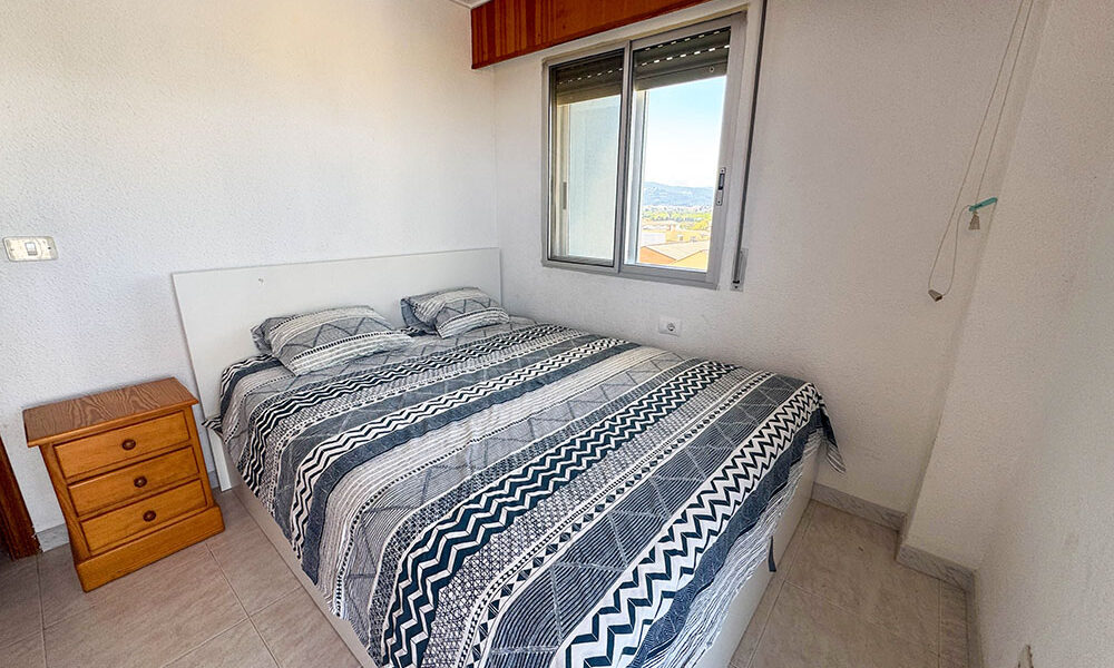 Inside this top-floor apartment, you have a central hallway that leads to all the rooms. The master bedroom has fitted wardrobes, and there are patio doors taking you out to a wonderful private balcony terrace 10m² with beautiful sea views. The second bedroom comes complete with two single beds with fitted wardrobes. There is an ample-sized family bathroom.
