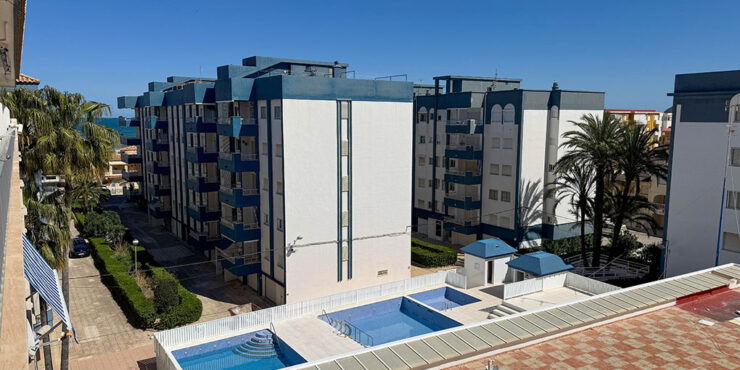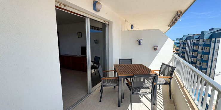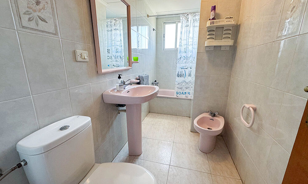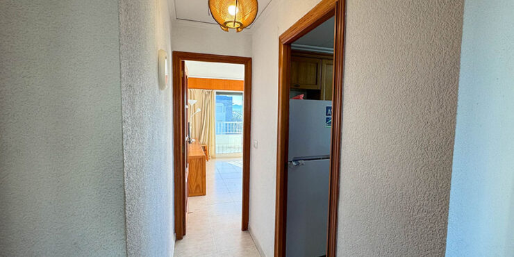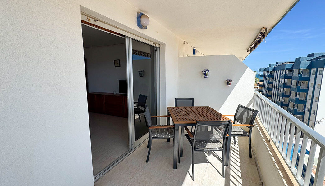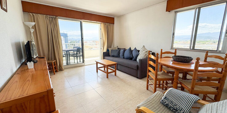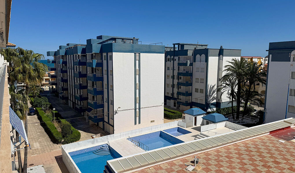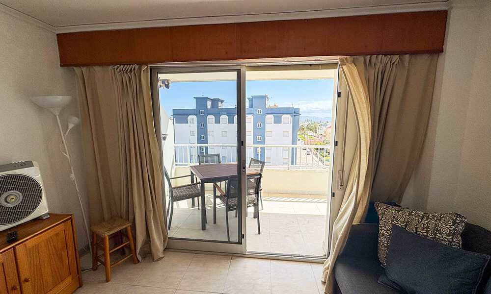 Inside this top-floor apartment, you have a central hallway that leads to all the rooms. The master bedroom has fitted wardrobes, and there are patio doors taking you out to a wonderful private balcony terrace 10m² with beautiful sea views. The second bedroom comes complete with two single beds with fitted wardrobes. There is an ample-sized family bathroom.