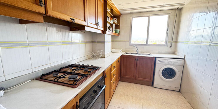 The fully fitted kitchen, complete with electro-domestics, includes a Balay washing machine. This kitchen has plenty of cupboard space and a marble work-surface. Then you have a spacious lounge dining room with patio doors taking you out to a second private terrace. This 13m² terrace is the ideal area to enjoy a meal with friends and family, looking across to the mountains on one side and out to the swimming pool and the sea on the other side.