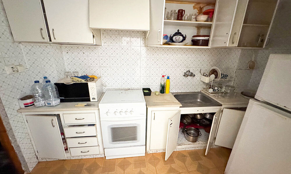The property inside remains in its original state; therefore, it would benefit from a comprehensive refurbishment throughout. However, the roof of this house has already been replaced, which is a very positive feature. Currently, inside the house, you have a ground-floor bedroom on the left-hand side of the reception hallway at the entrance. The open-plan reception carries on through to the lounge/dining room, complete with a chimney fireplace. This is a very good-sized room, complete with a door that opens onto the central patio and to the kitchen.