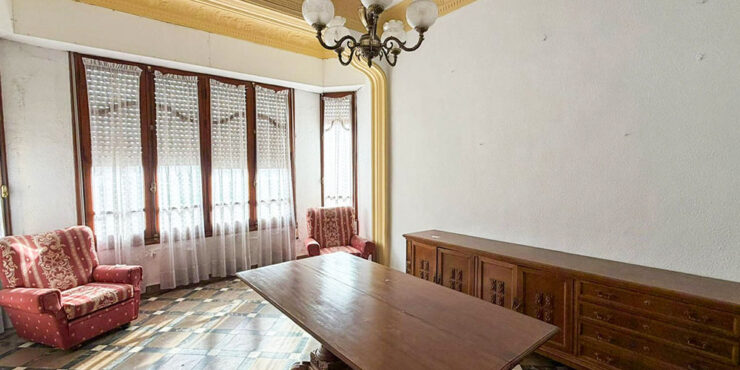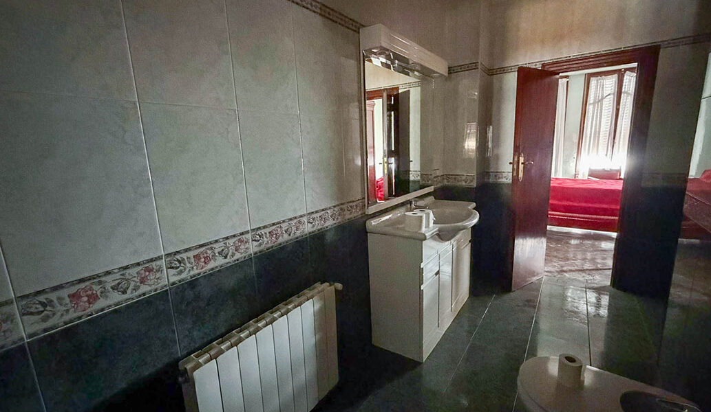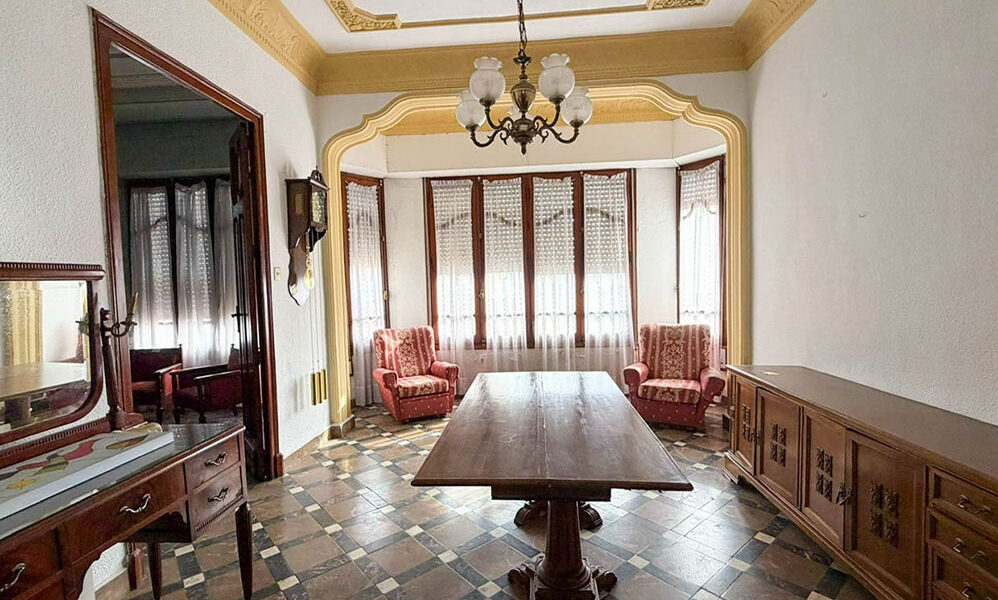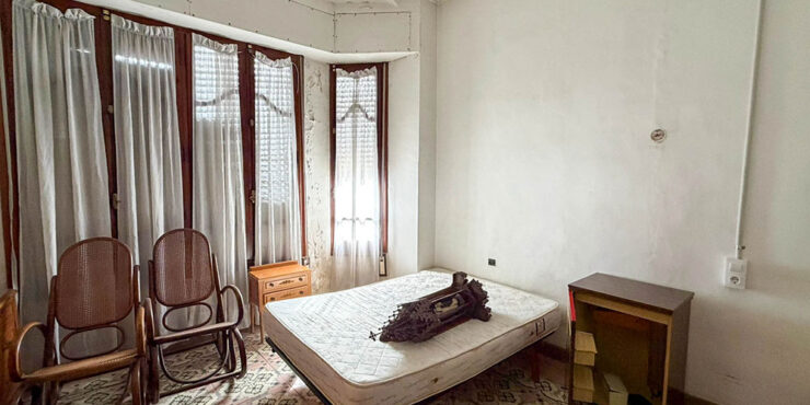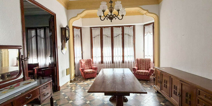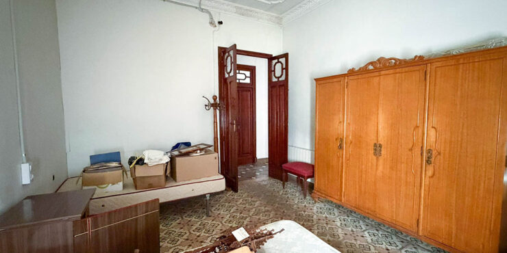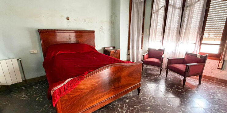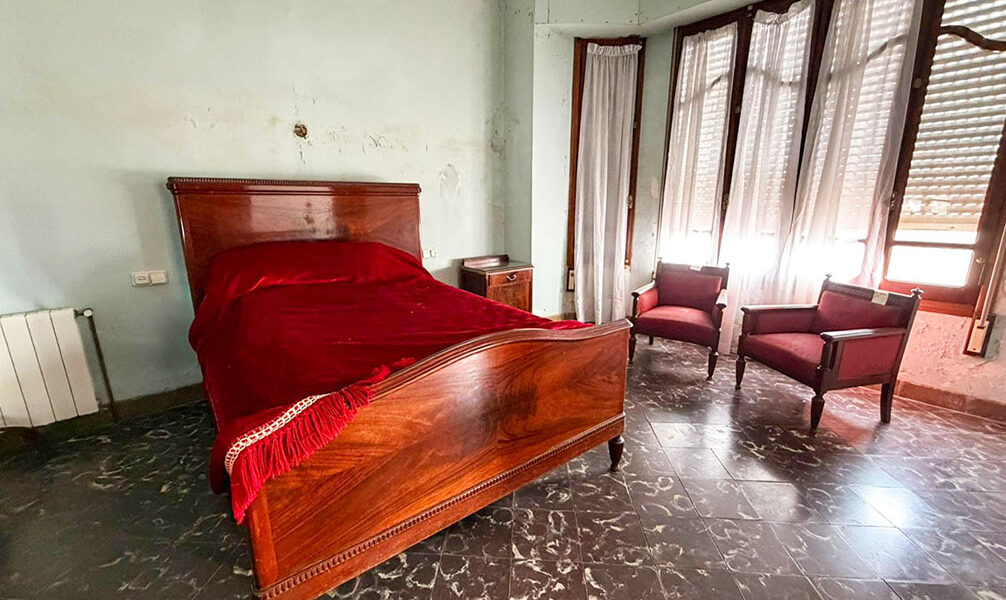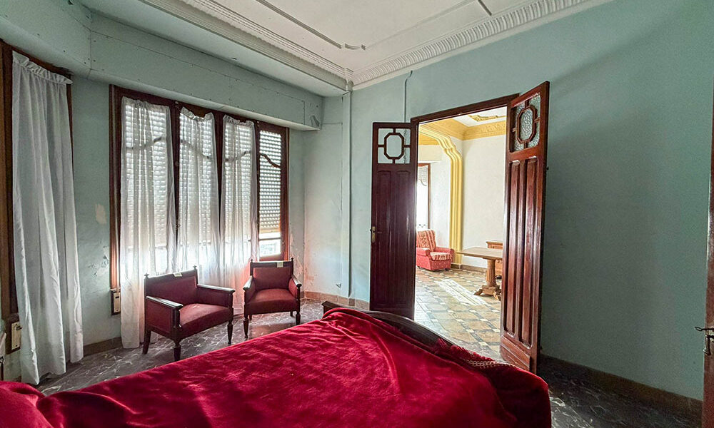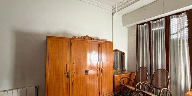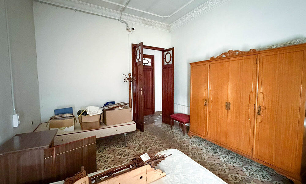 Upon entering the main living area via the internal staircase, you are welcomed by a central hallway that distributes to the different rooms of the home. The house offers four bedrooms in total, although three are currently accessible for viewing. To the right, you will find the first bedroom, followed by an elegant and generously sized living/dining room filled with traditional character. The principal bedroom is also located on this side and connects conveniently to the bathroom positioned directly across the hallway. To the left, there are two additional bedrooms, one slightly smaller yet still well-proportioned.