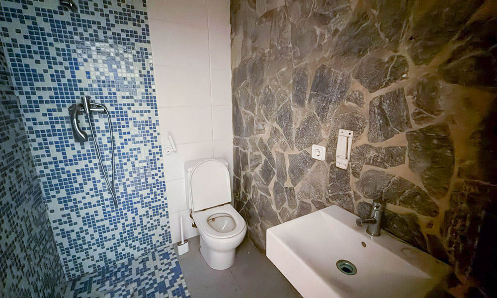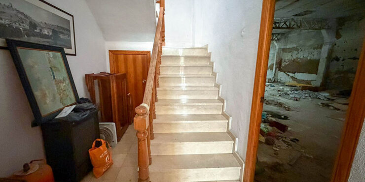 The ground floor of this traditional townhouse was formerly used as a construction business and still retains this versatile layout, including its own bathroom. In addition, the property features an exceptionally large and spacious garage – a rare find in village properties today. This traditional village house offers endless possibilities for parking, huge storage potential, or even workshop use.