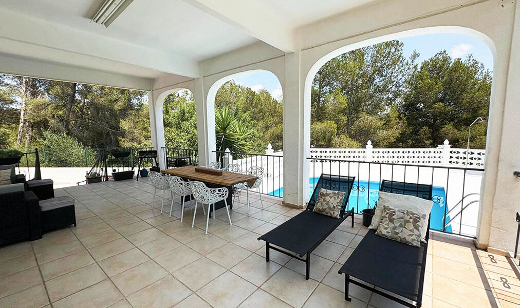 The villa sits centrally within its fully enclosed grounds, enjoying privacy. You have a spacious, tiled and arched covered terrace at the front which welcomes you into the house. This generously sized covered terrace has lovely views over your manicured gardens and the private swimming pool, which is equipped with a modern filtration system.