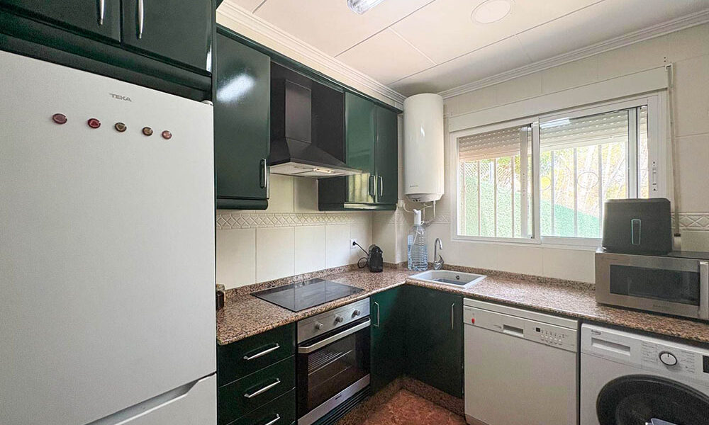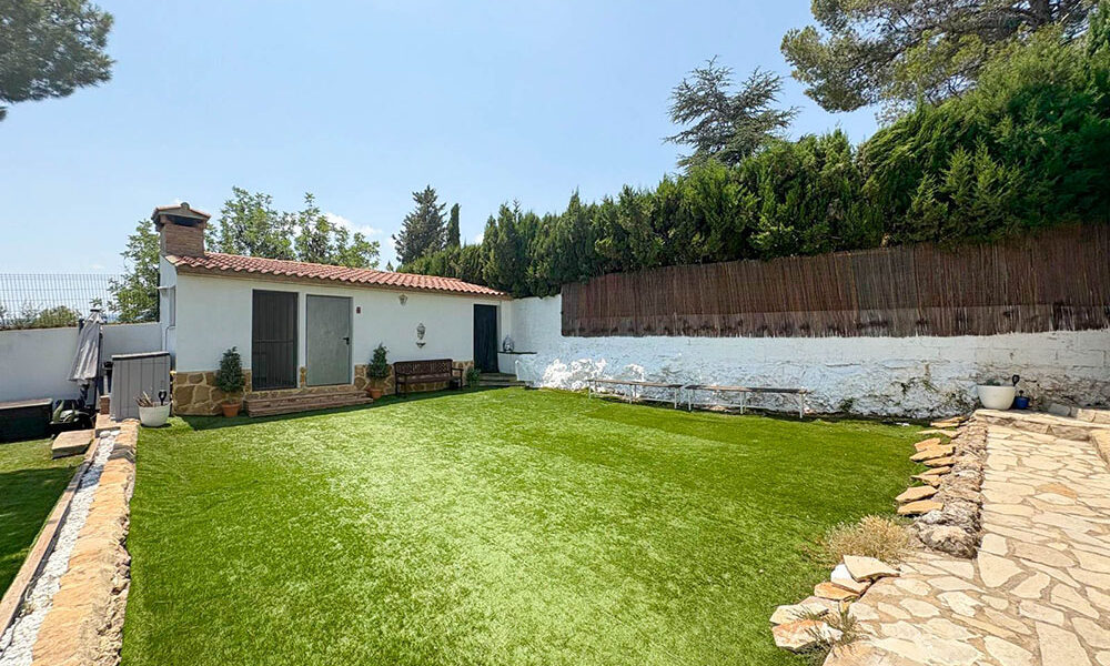 The garden features high-quality artificial (but very natural in appearance) grass, offering a beautiful green space with virtually no maintenance required. The outdoor area also includes a recreational space, a storage room and a traditional paella house (outdoor kitchen) – the perfect place to enjoy outdoor cooking and bring out the chef in you!